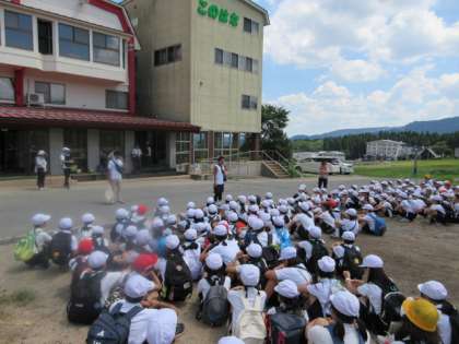 荷物を部屋に移動させたあと、いざという時に備えて、宿舎から広場に避難する訓練を行いました。