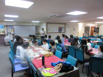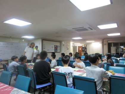 お風呂に入ったあと、室長会議を行いました。今日の振り返りや明日の予定の確認をしました。