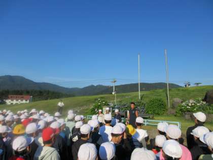 朝の集いの中で、昨日のキャンプファイヤーの表彰を行いました。