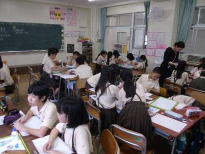 8月29日(金)の3時間目に、5年4組でも体育科で「けがの手当」についての学習をしました。けがをした時、どのように対応すればよいのかについて考えました。