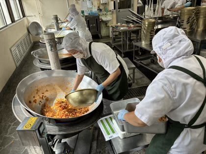 調理員さんが、クラスごとに計量して配缶してくれています。