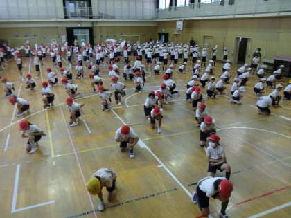 体育館ではタオルを使って練習中ですが、「バサッ!」という音の迫力ある演技を目指して頑張っています。