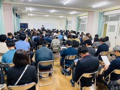 本日の放課後、北区内の小学校と中学校の先生方が堀川小学校に集まり、人権教育についての実践交流会が行われました。