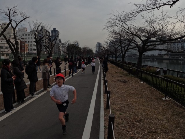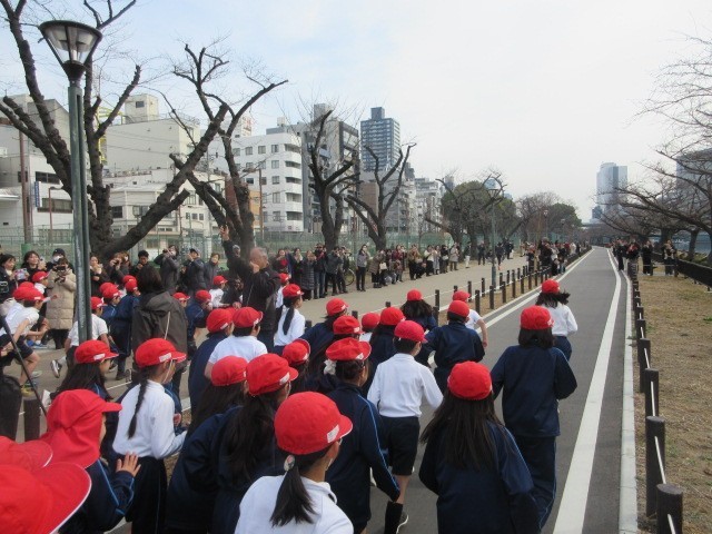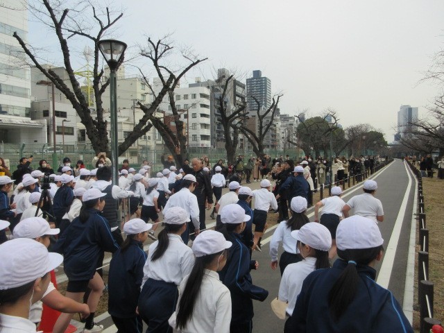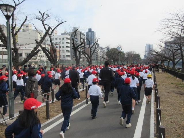 2月5日(木)、2年生・3年生・5年生の児童が、大川河川敷にて堀川マラソンを行いました。好天に恵まれ、子どもたちは大阪市中心部を流れる大川の河川敷を、最後まで力いっぱい走り抜けました。