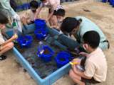 5月18日 土をさわることにためらう子、 ミミズを見つめる子 土の感触を楽しむ子...
