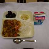 9月25日 今日の給食は、米粉のチキンカレーライス、キャベツのピクルス、ぶどう...