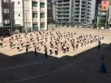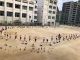 9月16日 青空の下、1年生が玉入れの練習をしています。 最初は、自分の場所を...