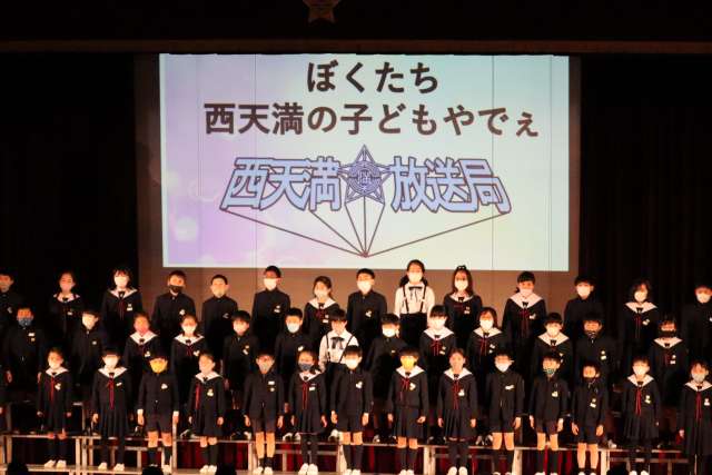 全国に誇る 学校近隣の名スポットを ニュース番組形式で発表しました。私たちの故郷・西天満はこんなにも魅力的で自慢できる場所なのだと、改めて知ることができました。歌「♪僕ら西天満の子どもやで〜町中のことなら何でも知ってんで〜♪」も素敵でした。立派な発表態度は6年生に迫るものがありました。本当に見事な発表でした。