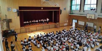 10日(金)の児童集会はゲーム集会でした。集会委員会の司会のもと、「じゃんけん列車」をしました。自分とは違う学年の人とじゃんけんをしてとても長い列車を作っていきました。今年度初めてのゲーム集会でしたが、どの学年もとても楽しそうに活動していまし