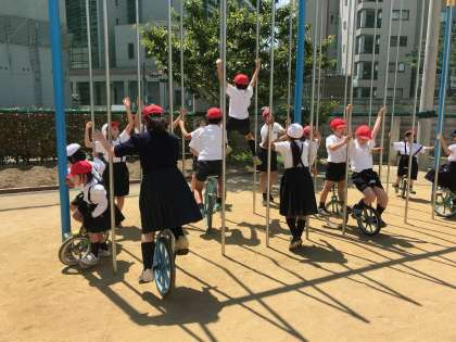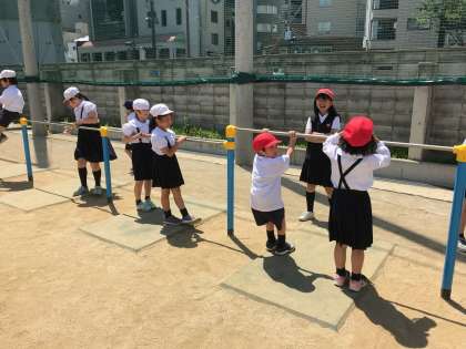 (ドッジビー・おおなわ・フラフープ・けんぱ・鉄棒・一輪車・のぼり棒・ジャングルジム・竹馬)