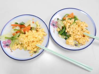 今回のメニューは、『スクランブルエッグ』と『三色野菜いため』でした。