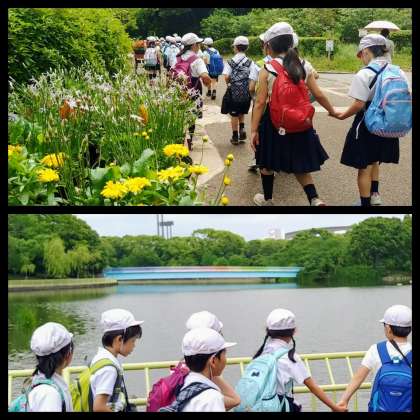 5月21日に、全校児童で長居公園へ遠足に行きました。天候が危ぶまれる中での決行でしたが、公園に到着してからは晴天の中、オリエンテーリングを楽しむことができました。たてわりグループのメンバーで協力し、様々なゲームにチャレンジしました。ポイント発表は明日の全校集会で行う予定です。
