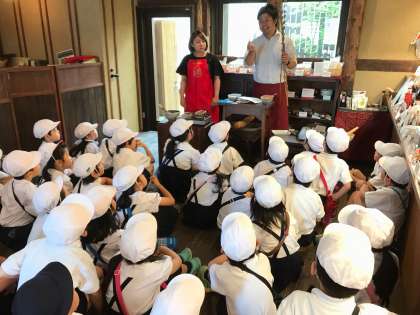 最後は子どもたちからの質問コーナーです。「和田萬さんで一番の人気商品はなんですか。」「外国の人もごまを買いにきますか。」など、事前に考えていた質問をしました。子どもたちは今日の学習でさらに、ごまに興味をもったようです。