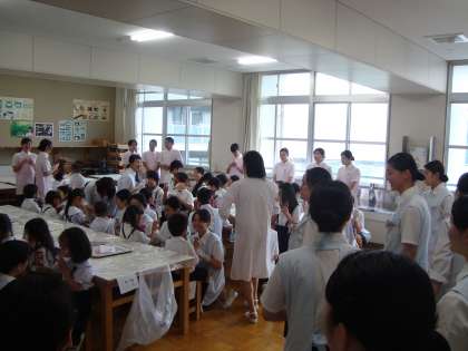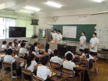 1,2、3、5、6年生は、「なにわ歯科衛生専門学校」の協力で本年度もフッ素塗布を実施しました。歯の講話もしていただいて、とても楽しく学習することができました。