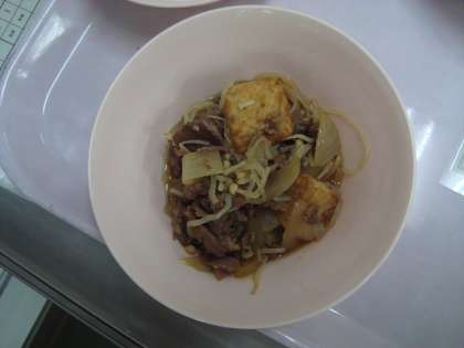 すき焼き煮は、「ふ」の個別対応献立です。大阪市の給食では、アレルギー対応を申し込んでいる児童に「ふ」を除いたすき焼き煮を提供しています。(一番目の写真)