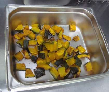 「すき焼き煮、焼きかぼちゃ、野菜のそぼろいため、ご飯、牛乳」
