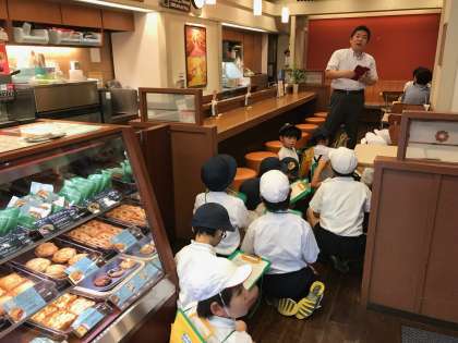 6月6日(木)、3回目の町たんけんに出かけました。今回は、グループに分かれて、4か所(千鳥屋、天満警察署、なにわ翁、ミスタードーナツ)を見学しました。詳しくお話を聞かせていただいたり、質問に答えていただいたり、自分の目で観察したりして、子どもたちは有意義な時間となりました。学校に帰って、見学してきたことをうれしそうに報告していました。今回見学したことは、それぞれの班でまとめて、他の班に発表する予定です。