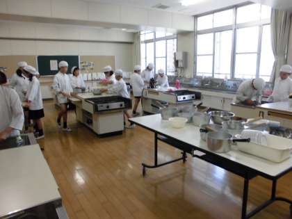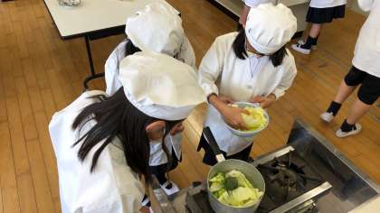 家庭科の授業で調理実習をしました。できあがりの料理をイメージして分量を考え、おいしくいただくために、つくり方や手順、注意することを調べ、計画を立てて調理しました。「おいしく食べることができた」や「家でも調理をしていみたい」など様々な感想がありました。