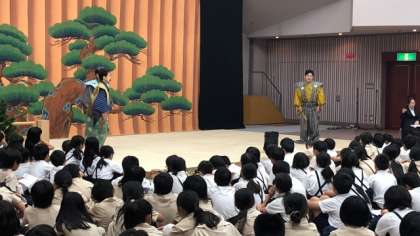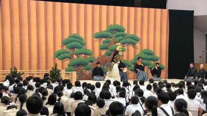 北区文化芸術体験事業の伝統芸能(能・狂言)を鑑賞しました。伝統芸能ということで厳格なイメージですが、狂言は「お笑い」であるため比較的楽みながら鑑賞することができました。また能は、「高砂」の謡(うたい)の体験することができました。