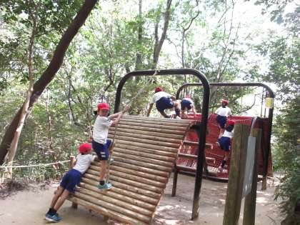 離宮公園では、「子どもの森」というアスレチックを班で回って楽しみました。