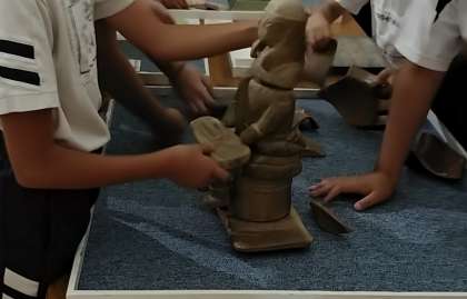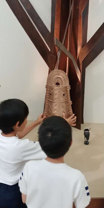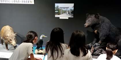 道の駅「但馬のまほろば」でトイレ休憩後、隣接している「朝来市埋蔵文化財センター『古代あさご館』」で、弥生・古墳時代の出土品や但馬の生き物について見学しました。歴史の学習は6年生ですが、みんな楽しく(遊びながら)勉強できました。