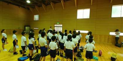 体育館で開舎式を終え、安全に気をつけて、誰一人怪我のない林間にしようと確認しあいました。