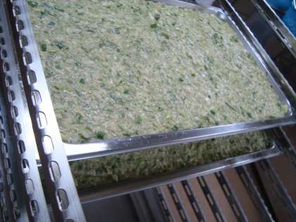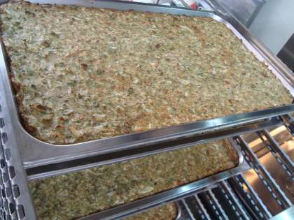 お好み焼きは、キャベツ、青ねぎ、小麦粉、塩、かつおぶし、青のり、鶏卵、やまいも、水を混ぜ合わせ、焼き物機で焼いています。食べる時にトンカツソースをかけて食べます。