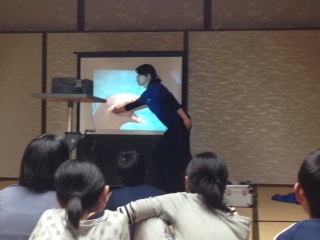 水族館の方によるセミナーの様子とお土産を買っている様子です。