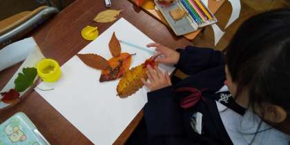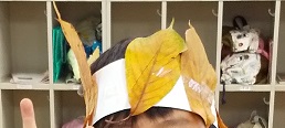拾った落ち葉やどんぐりは、おめんやかんむりなどで使いました。