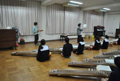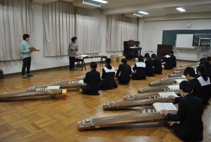 上野先生、後藤先生に来ていただき、お琴を教えていただきました。