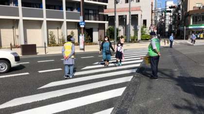 児童が登校するときにはぐくみ隊や地域の方々、PTAの旗当番の方が通学路に立って、児童が事件や事故に巻き込まれないように見守って頂いております。児童が安心・安全に登校できるように、たくさんの方々にご協力いただいております。毎日、子どもたちのためにご協力いただき、ありがとうございます。