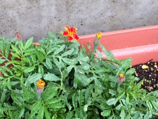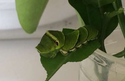 気温が30度に届くほどの暑さになりました。ヒマワリは背丈が伸び,マリーゴールドは開花が始まりました。アゲハは黒っぽい幼虫から緑色の見事な幼虫になりました。さなぎになるのも後少しです。頭の上の模様が不思議ですね。