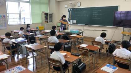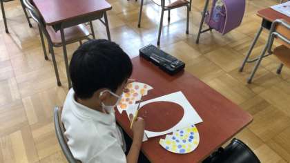 今日は、図画工作の授業で、「ひみつのたまご」を描きました。たまごから、どんな生き物が誕生するか想像を膨らませながら描きました。ご家庭でも、どんなたまごを描いたか聞いてあげてください。