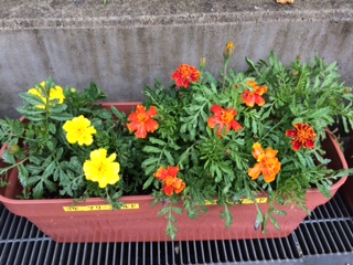 マリーゴールドの花が本格的に咲き始めました。とてもきれいです。ヒマワリはすでに1mの高さになりました。ホウセンカはつぼみがチラリホラリ。アゲハはついに「さなぎ」に!夏を感じます。