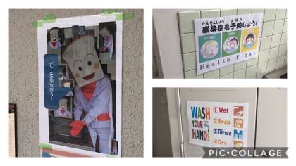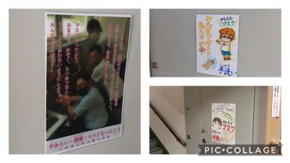 本校の教職員が、コロナウイルス感染拡大防止の取組の一つとして、子どもたちに手洗いについて意識してもらえるように「手洗いについてのポスター」を作成しました。