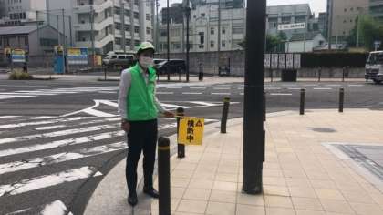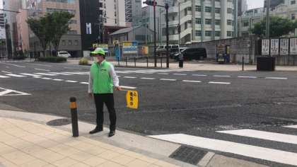 毎週火曜日と木曜日は、尼崎信用金庫の職員の方々が朝の登校を見守ってくださっています。