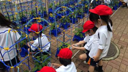 天気の良い日が続いたこともあり、先週より、倍以上の高さまで伸びている朝顔もありました!