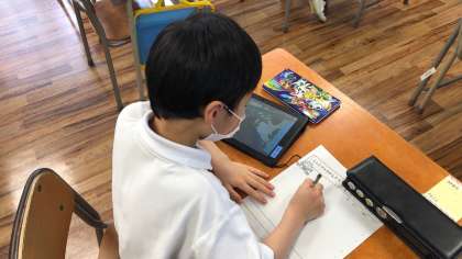 教室では、タブレット端末を見ながら、ワークシートに気づいたことをまとめました!