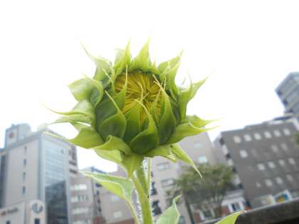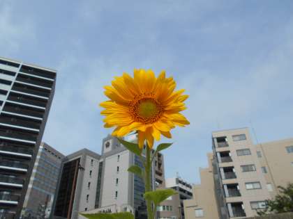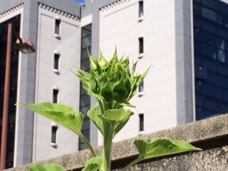 ヒマワリが1つ開花しました。ヒマワリの花を見ると,本格的に夏がやってきた感じがします。本来7月の開花が多いのですが,少し早かったですね。