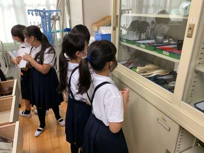 5年生から家庭科の学習が始まります。今回の学習は、家庭科室にどんな物があるのかを調べました。“普通教室には無いもの”を条件に探検しましたが、ガスコンロやホットプレート、アイロン等、多い人は30個以上の物を発見していました。実習で家庭科室を使うのがより楽しみになりました。
