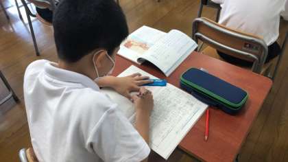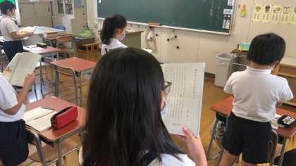 「ヤドカリとイソギンチャク」という教材文を5つのまとまりに分け、段落相互の関係について考えました。そして、段落のキーワードや大切な言葉は何なのか意識し、接続語や文末表現を意識しながら、要約していきました。