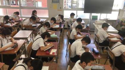 今日は、「イースター島には なぜ森林がないのか」のテストをしました。授業が再開して計画的に授業が進んでいます。