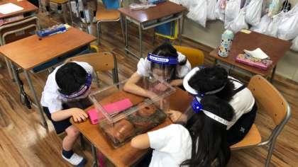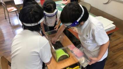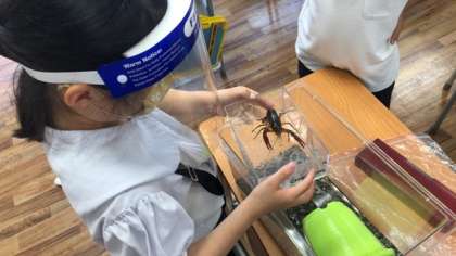 今日は、アメリカザリガニの観察をしました。体の形は、どんなのかな?色はどんな色かな?と観察していました。