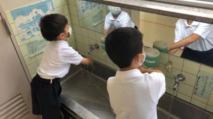 今日、正しい手洗いの仕方を覚えて帰ってますので、お家でも手洗いの方法を聞いてあげて下さい!