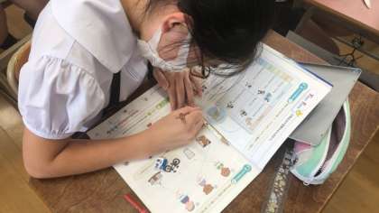 外国語の授業では、友達の宝物について英語で聞いて、答える学習をしました。