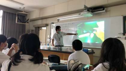 今日の理科の授業は、ものを燃やす前と燃やした後の空気の成分を調べるために使う気体検知管の説明を聞いていました。そのあと、実際に気体検知管を使ってものを燃やす前の空気の成分を調べました。