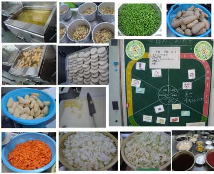「チキンレバーカツ ケチャップ煮 たことキャベツのバジルソテー 黒糖パン 牛乳」