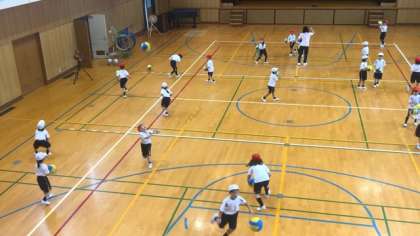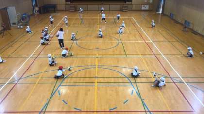 今日は、体育の時間にボールを使って、運動をしました。ボールを高く上げてキャッチや、ボールが空中にある時に手を叩いてキャッチなど、色々な活動をしました。