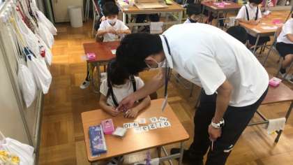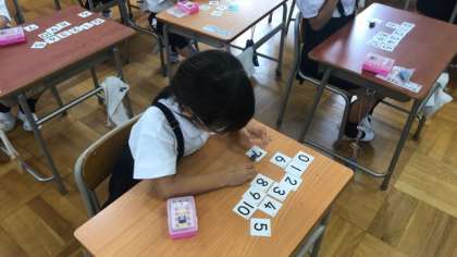今日は、サイコロと数字カードを使って足し算の学習をしました。ゲーム感覚で楽しく計算に取り組めました。