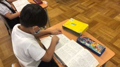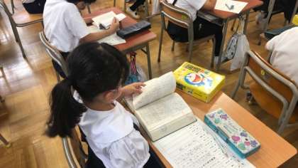「はりねずみと金貨」の物語文で分からない語句の意味調べをしました。必死に辞書を引いて、語彙力を高めていました。
